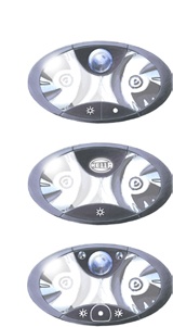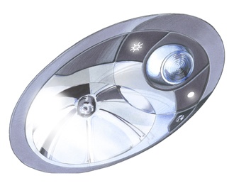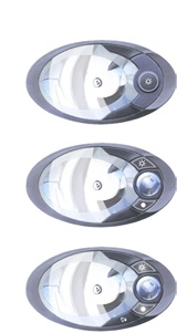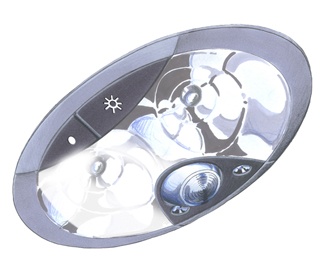 Designvarianten für eine Traktor-Kabinen- leuchte. Rechts sind jeweils 3 Ausstatt- ungsvarianten zu sehen.